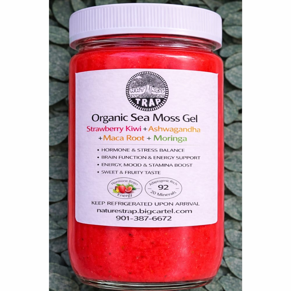 Our Strawberry Kiwi Sea Moss Gel is infused with Ashwagandha, Maca Root, and Moringa to create a delicious and functional blend designed to nourish the body while supporting mental clarity, stamina, and overall vitality.